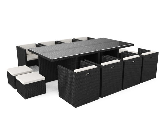 Potah polyratanové sedací soupravy je vyroben ze 100% polyakrylu, zatímco výplňový materiál je z pěnové hmoty.