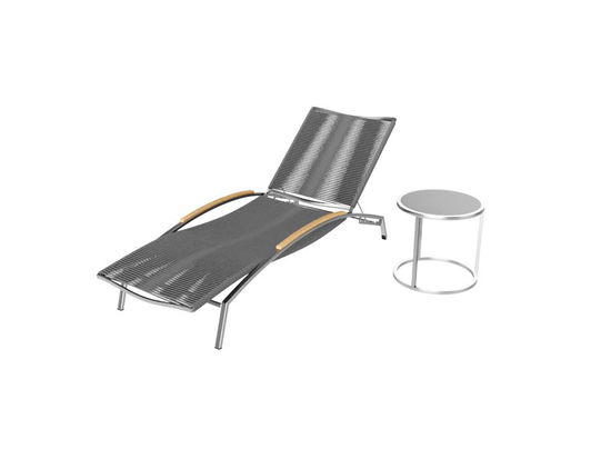 Pohodlné lehátko se dvěma kolečky má vysoce kvalitní rám z lesklé nerezové oceli. Zakřivené područky jsou pokryty týkovým dřevem a poskytují příjemný hmatový vjem. Obzvláště pohodlné je šedé lanové čalounění, které vyplňuje jak ložnou plochu, tak i nastavitelné opěradlo. Materiál odolný vůči povětrnostním vlivům umožňuje proudění vzduchu k tělu a příjemně se přizpůsobuje.