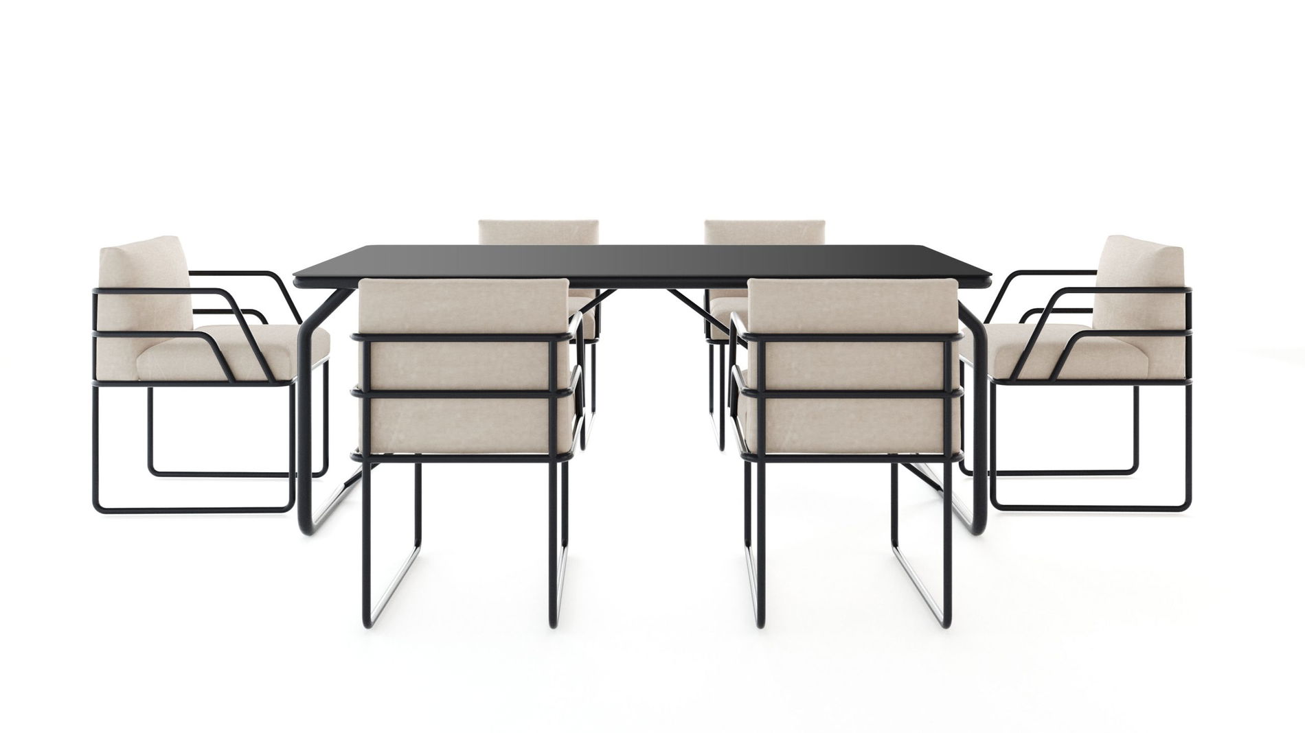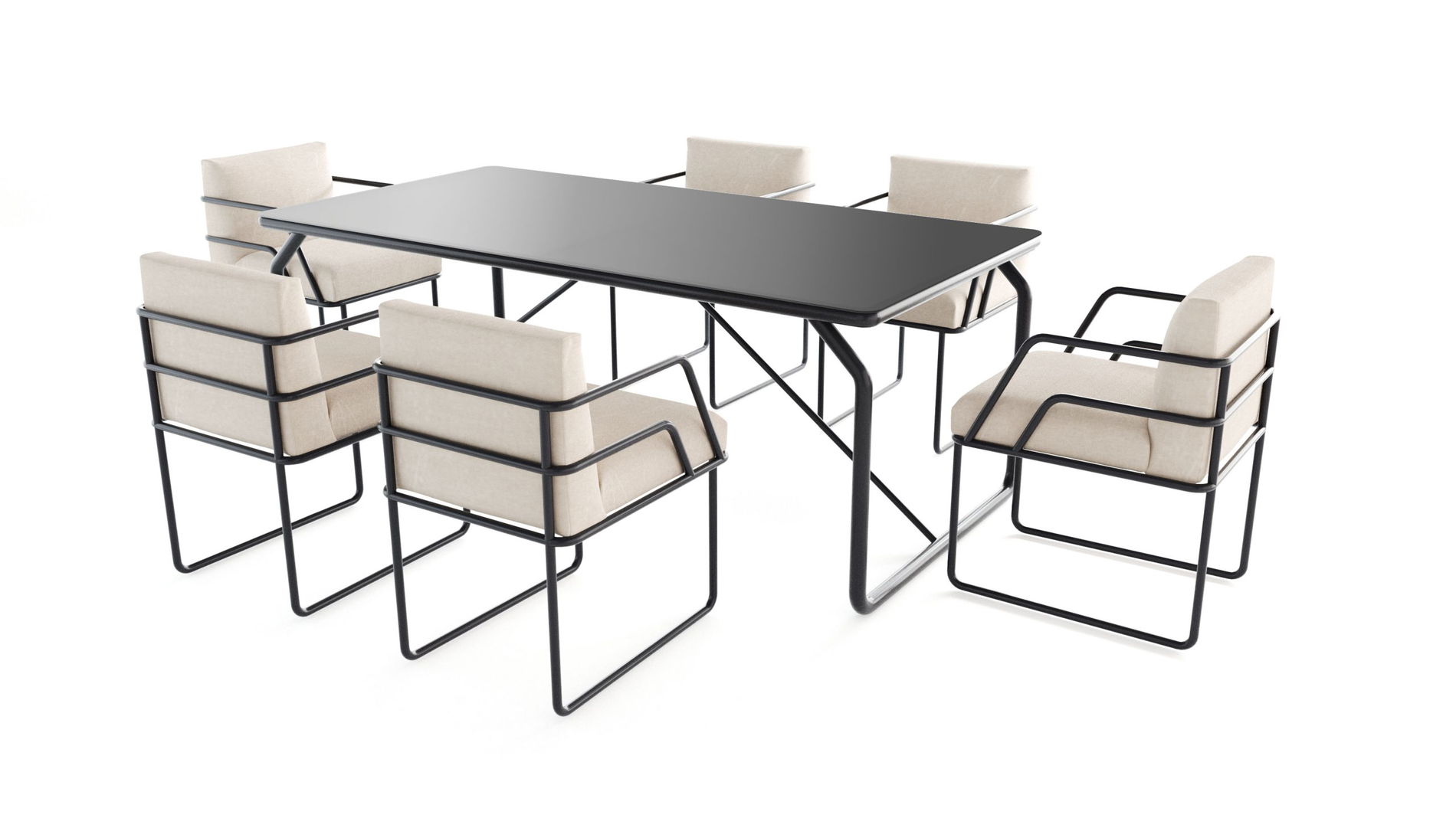 Jídelní souprava Belaya Dining L nabízí moderní design a luxusní pohodlí. Rám z nerezové oceli v antracitové barvě, krémové čalounění odolné proti UV záření a potahy se snadnou údržbou z ní činí stylový doplněk vaší zahrady.